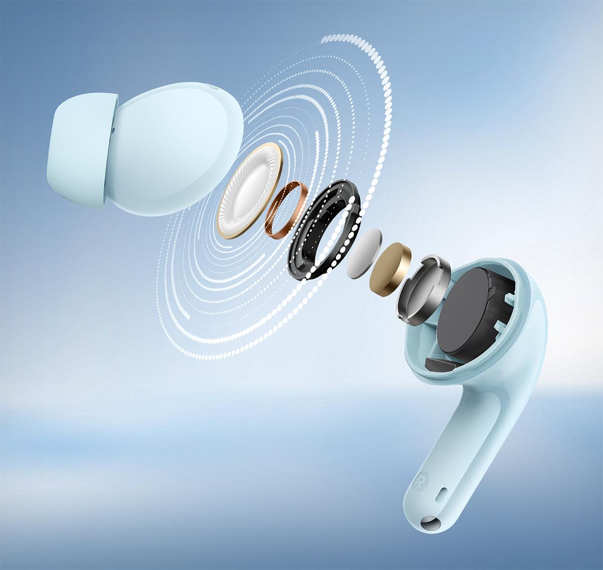 Конструкція вкладиша розроблена таким чином, щоб забезпечити стабільне положення у вусі та підвищити якість прослуховування, відсікаючи всі сторонні звуки. У навушниках використовуються два мікрофони з алгоритмами ШІ, які одночасно аналізують навколишній фон і мінімізують вплив шумів. Redmi Buds 8 Lite впевнено справляються навіть із поривами вітру до 6 м/с, зберігаючи чіткість мови та чистоту голосової передачі — система автоматично адаптується до умов довкілля та забезпечує професійний рівень звучання в будь-яких ситуаціях.