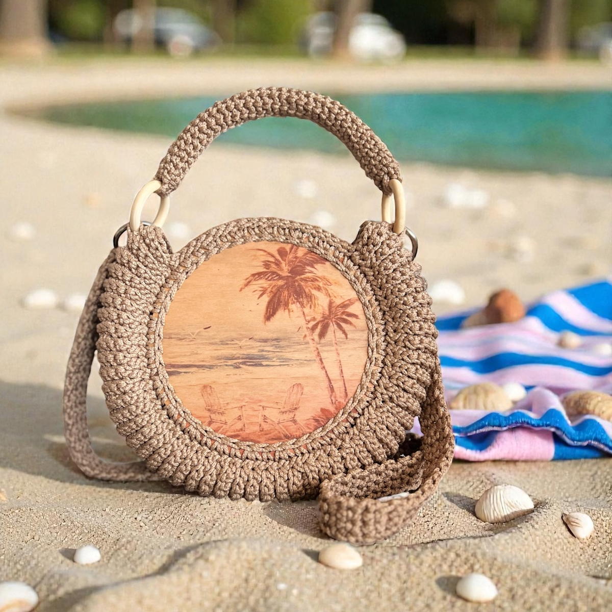 Задня стiнка сумки також на дерев’яній основі пiд кольор сумочки.