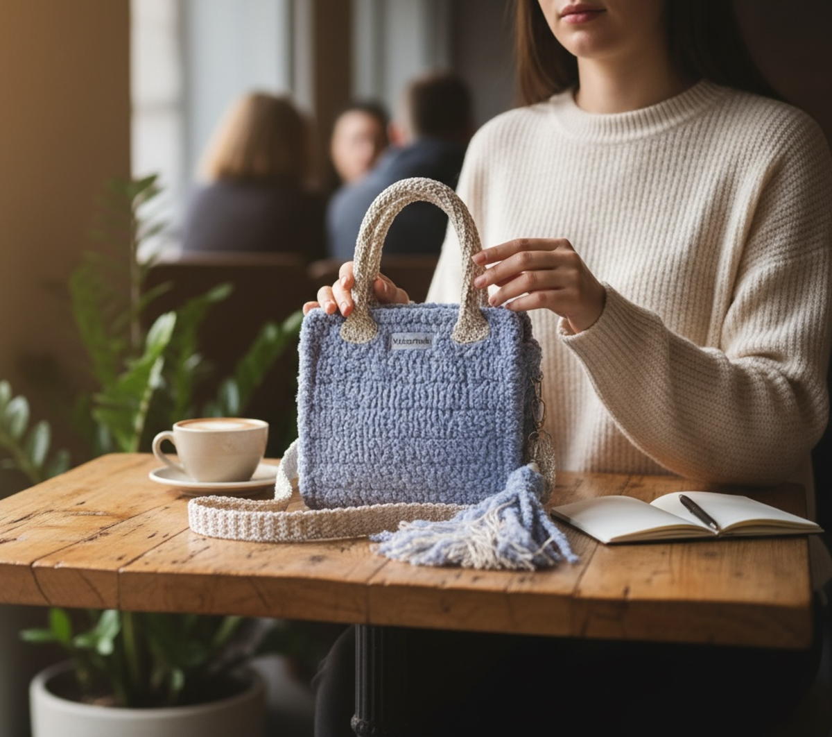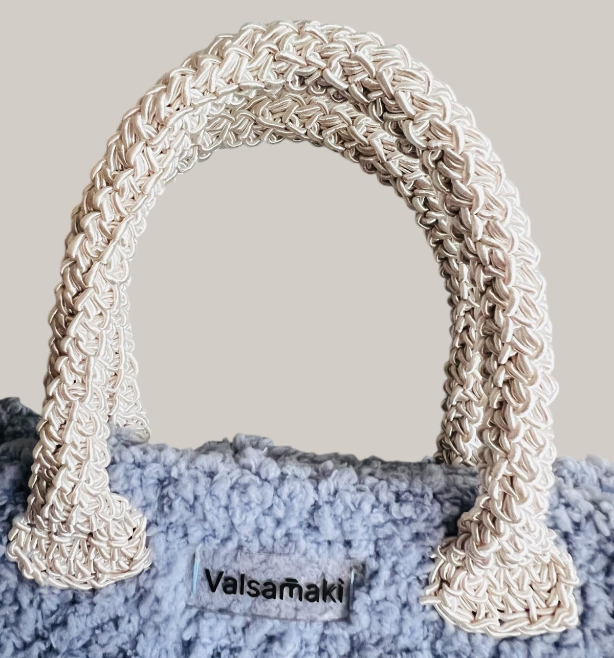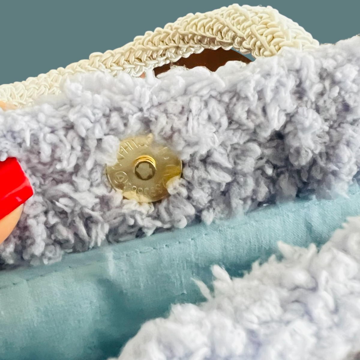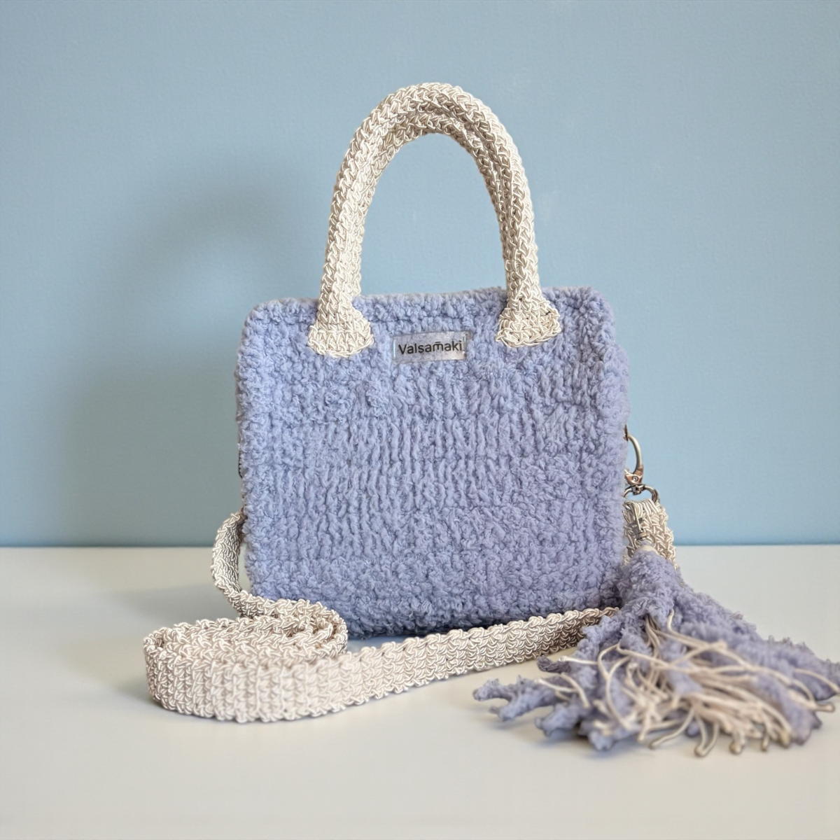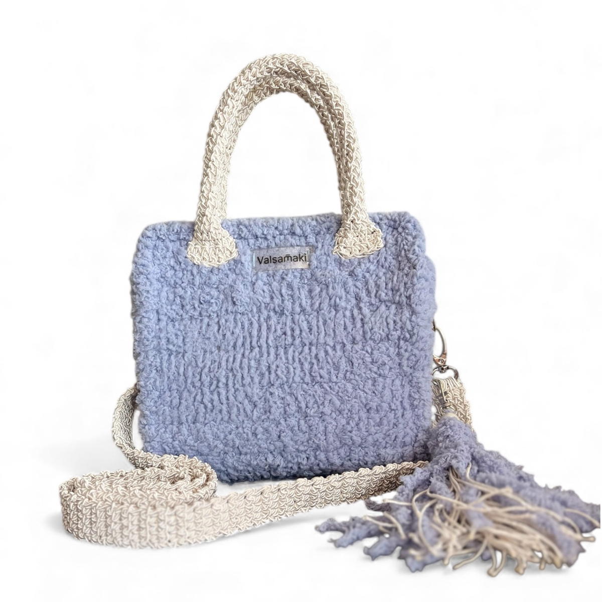 Акуратна маленька сумка блакитного кольору яку можна носити через плече, або на лікті, або у руці, з модної в цьому сезоні нітки буклє стане лаконічним та стильним аксесуаром, який підбере ваш образ або доповнить його.